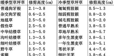 暖季型草坪:應該在生長早、后期提高修剪高度以提高草坪的抗凍能力和加強光合作用。
