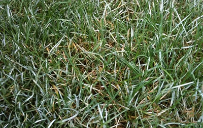 初白色,后污白色、灰褐色。霉層表面有白色粉狀物,后期霉層中出現(xiàn)黃色、橙色或褐色顆粒。隨病情發(fā)展,葉片變黃,早枯死亡,一般老葉較新葉發(fā)病嚴(yán)重。發(fā)病嚴(yán)重時,草坪呈灰白色,像撒了一層白粉,受震動會飄散,該病通常春秋季發(fā)生嚴(yán)重。